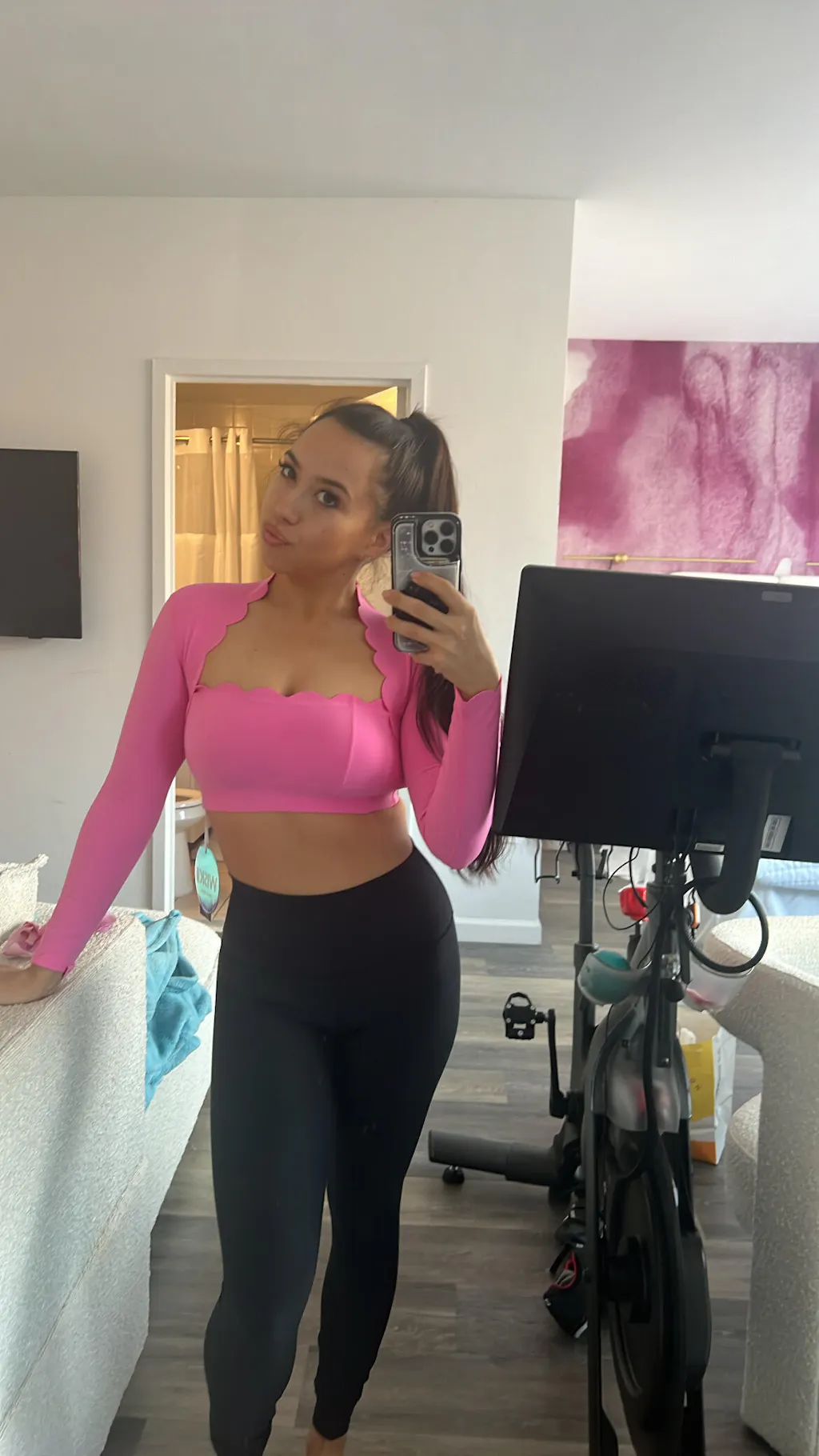 Scallop Cropped Long Sleeve Top & V-waist Yoga Legging